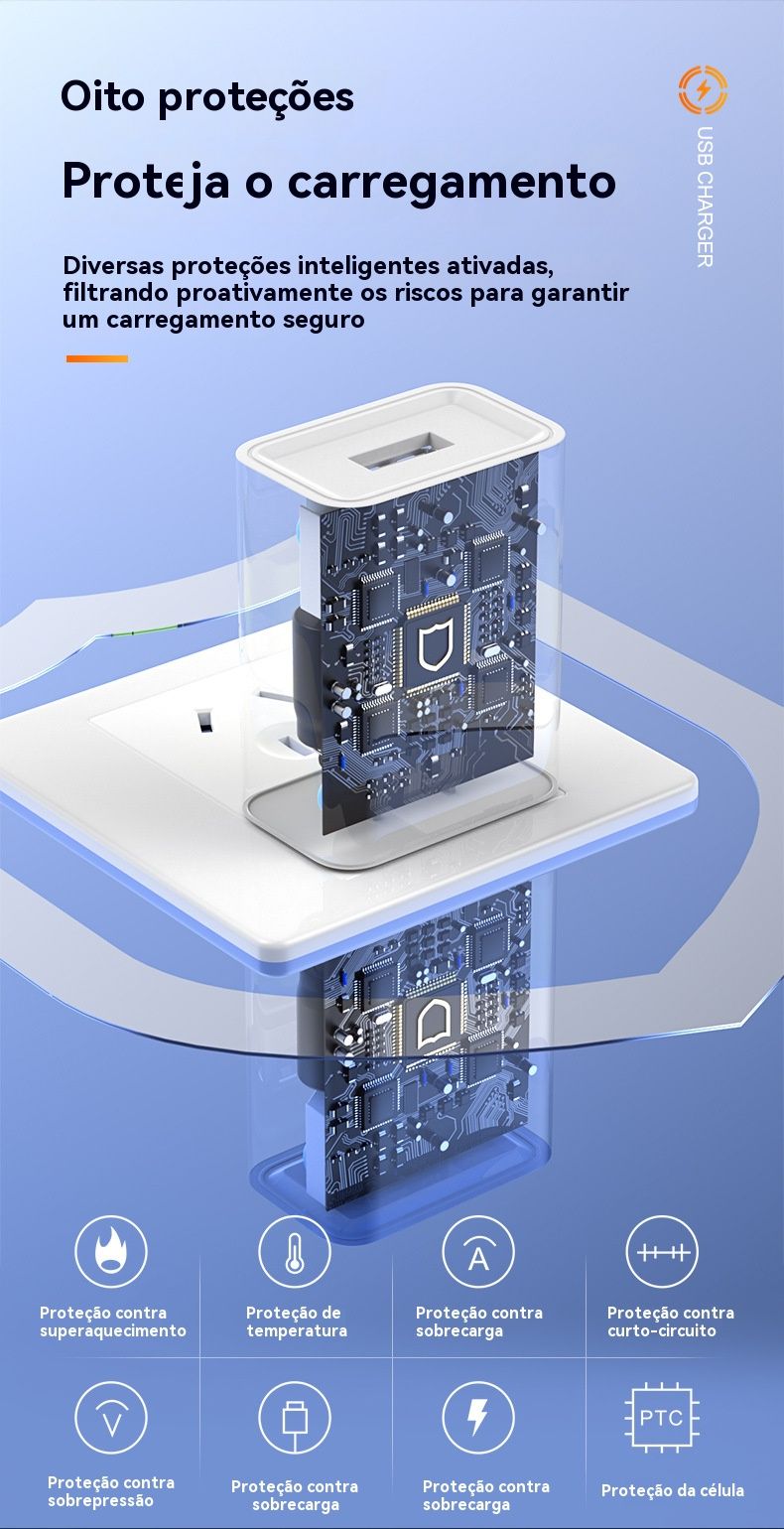 Tomada USB Superrápida para Celulares + Adaptador de Energia para Pequenos Eletrodomésticos